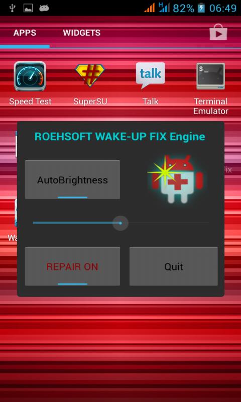 This application repairs your apparatus moment. This App is made to repair the Buggy Part(s) from Android Power Management.(black Screen Problem)